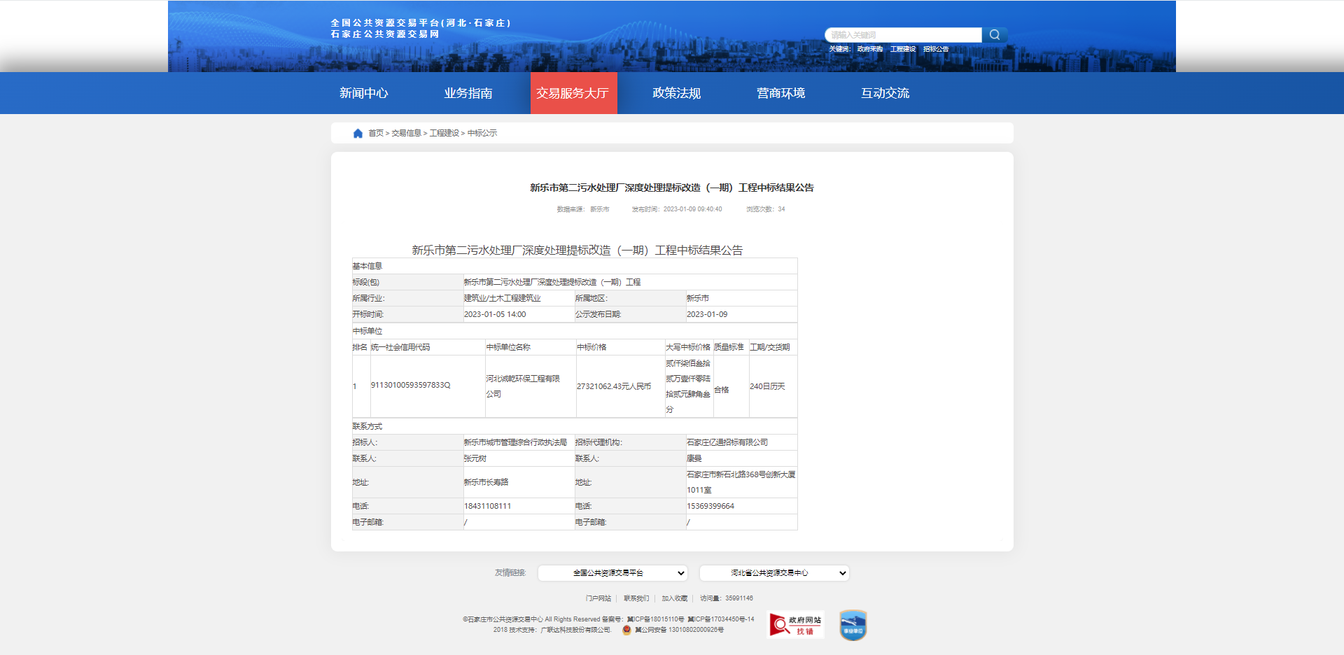 2023年1月5日,由新樂市城市管理綜合行政執(zhí)法局招標(biāo)的“新樂市第二污水處理廠深度處理提標(biāo)改造(一期)工程項(xiàng)目”,我公司憑借良好的信譽(yù)、雄厚的技術(shù)實(shí)力,加之優(yōu)秀...