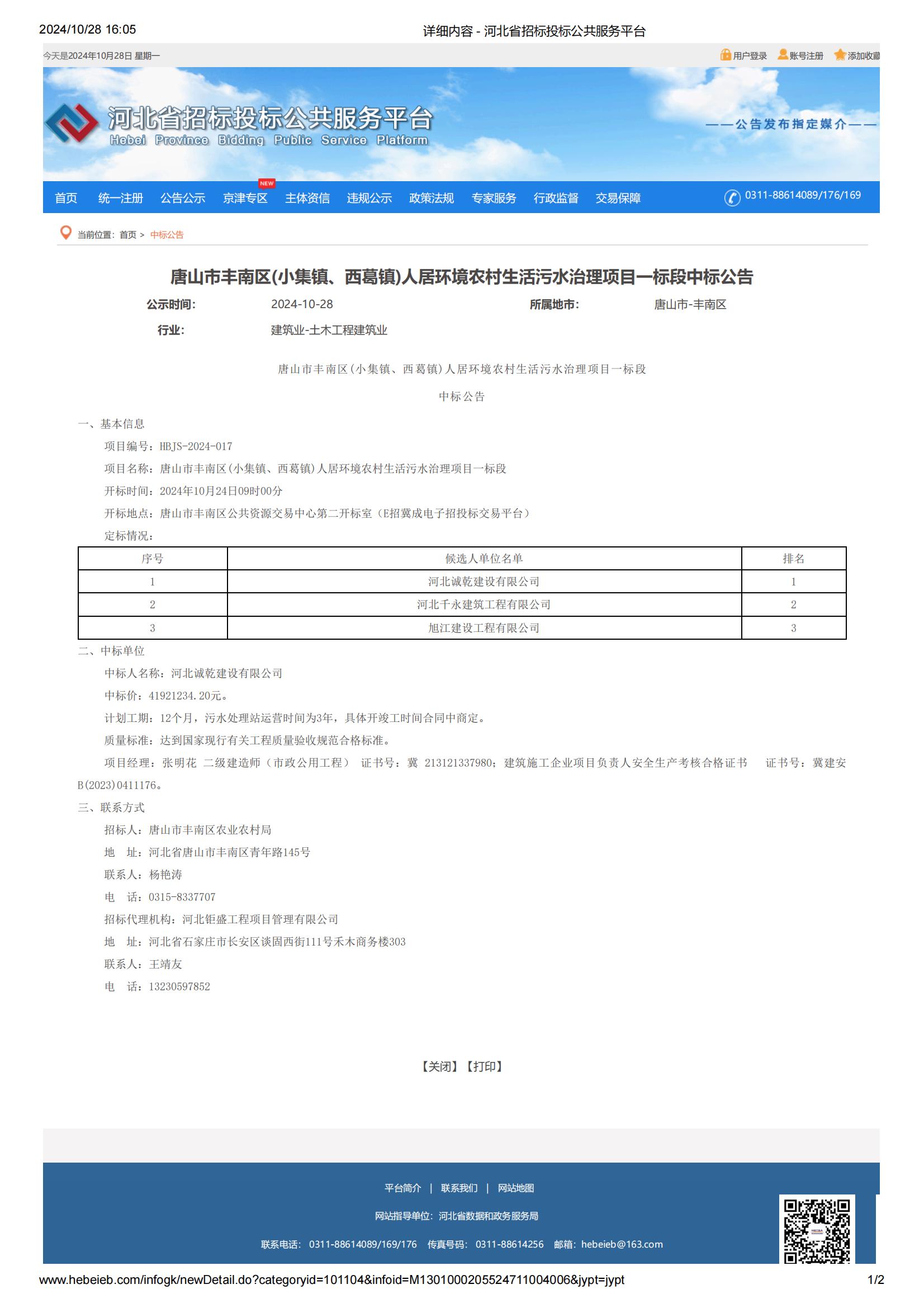 項(xiàng)目名稱:唐山市豐南區(qū)(小集鎮(zhèn)、西葛鎮(zhèn))人居環(huán)境農(nóng)村生活污水治理項(xiàng)目一標(biāo)段中標(biāo)額:41921234.20元項(xiàng)目概括:新建污水提升泵井6座;污水處理站2座,污水收...